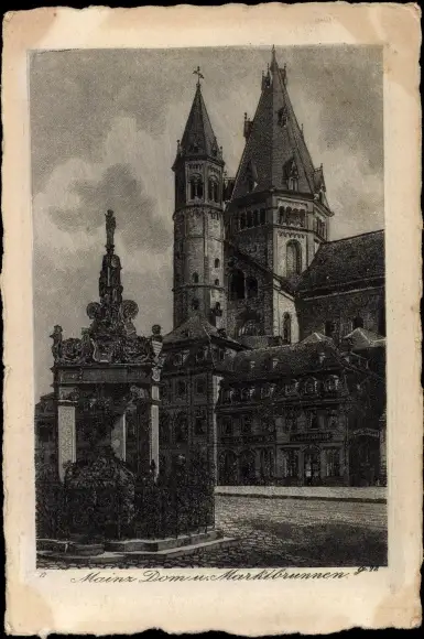 Künstler Ak Mainz am Rhein, Dom, Marktbrunnen