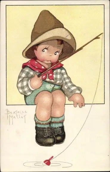 Künstler Ak Mallet, Beatrice, Kind mit einer Angel