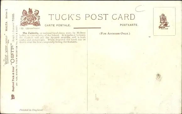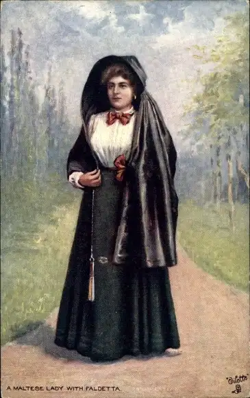 Künstler Ak Malta, A Maltese lady with Faldetta, Malteserin, Tuck Series I No 7090