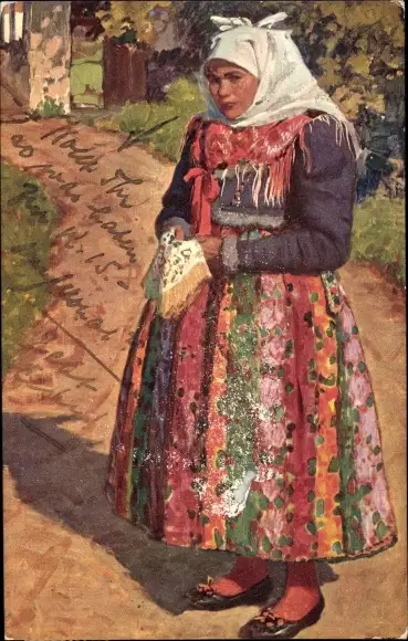 Künstler Ak Maly, V., Frau in tschechischer Tracht