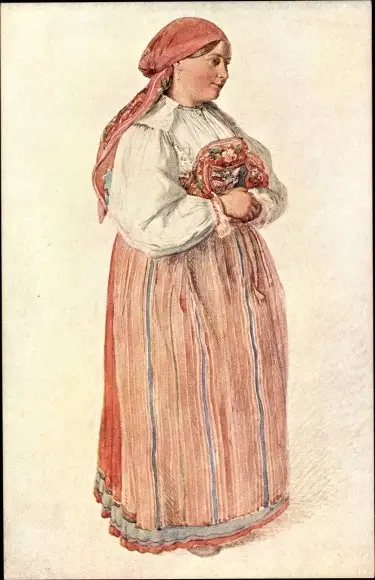 Künstler Ak Manes, J., Frau in tschechischer Volkstracht
