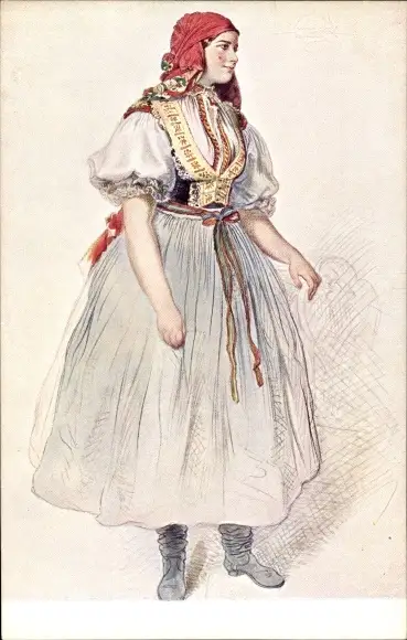 Künstler Ak Manes, J., Mädchen aus Bilovice in tschechischer Tracht