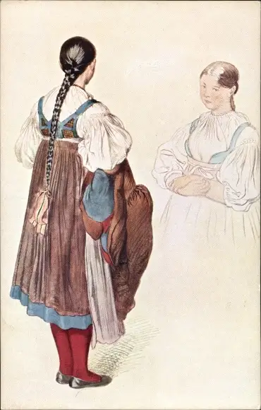 Künstler Ak Manes, J., Mädchen aus Těšín in tschechischer Volkstracht