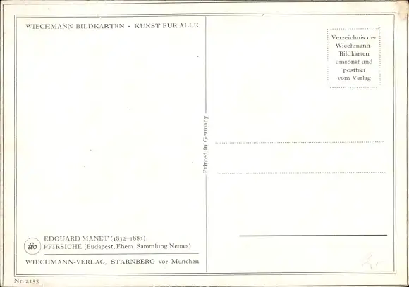 Künstler Ak Manet, E., Pfirsiche, Früchte, Obst