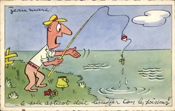 Künstler Ak Mann beim Angeln, Angelrute, Misserfolg