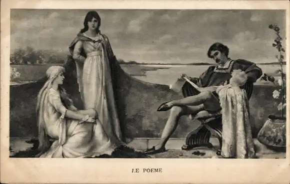 Künstler Ak Mann liest Frauen ein Gedicht vor
