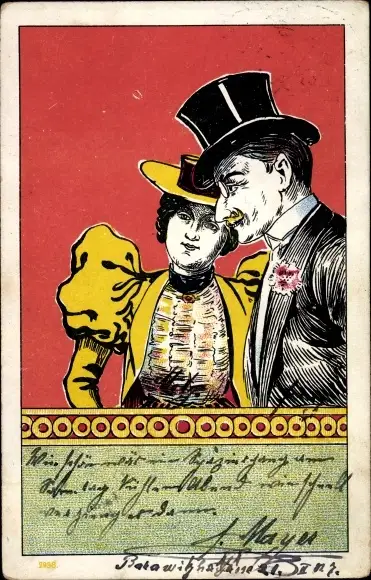 Künstler Ak Mann mit Hut, Frau mit Kleid