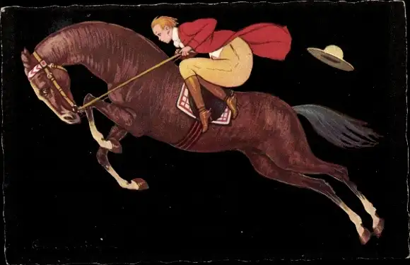 Künstler Ak Mann reitet auf einem Pferd
