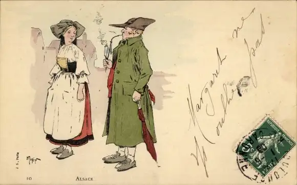 Künstler Ak Mann und Frau in Elsässer Trachten