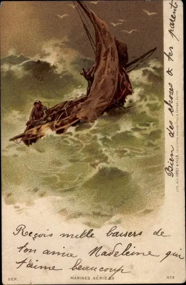 Ansichtskarte, Postkarte, Fischfang, Fischer, Angler, Perlenfischer, Fischerboot