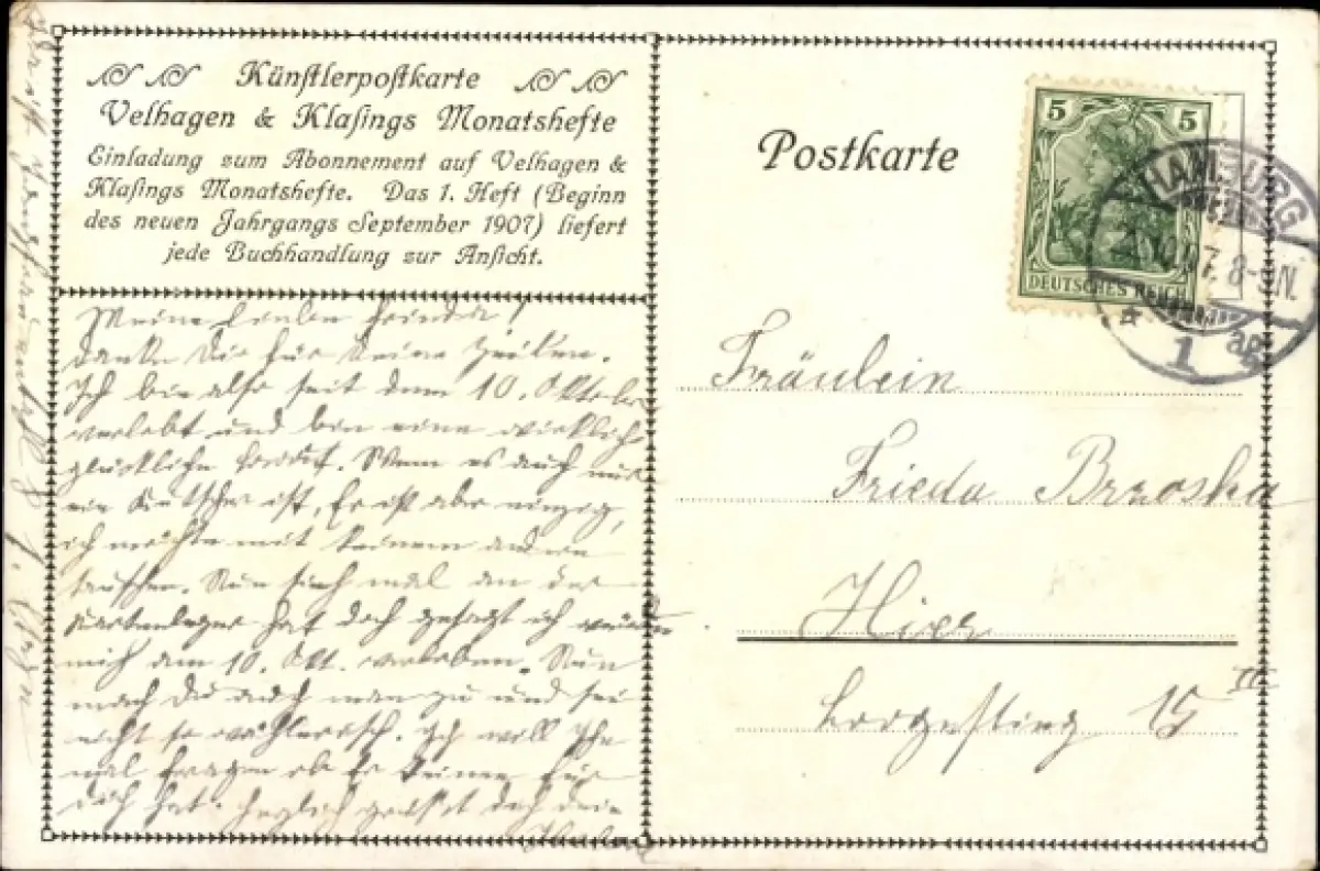 Zustand, siehe Scan, gelaufen, 1907 - ca 14 cm X 9 cm