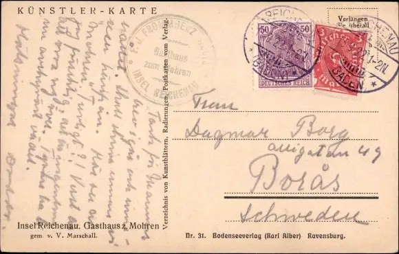 Künstler Ak Marschall, V., Insel Reichenau, Gasthaus zum Mohren