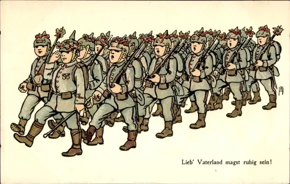 Künstler Ak Marschierende Kinder in Uniformen, Lieb' Vaterland magst ruhig sein