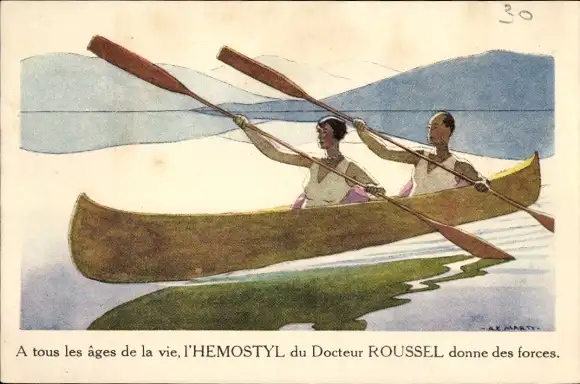Künstler Ak Marty, A. E., Ehepaar im Ruderboot, Ruderpartie