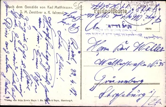 Zustand, siehe Scan, gelaufen, 1917 - ca 14 cm X 9 cm