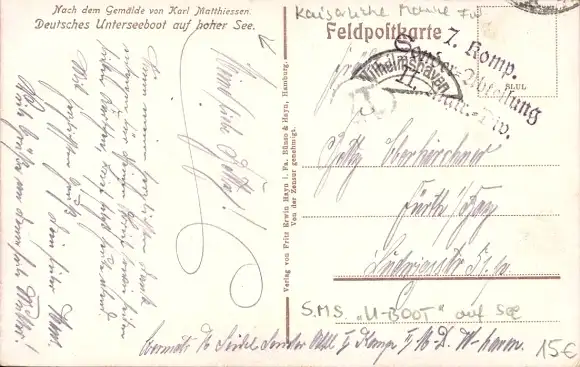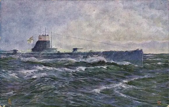 Künstler Ak Matthiessen, Karl, Deutsches Unterseeboot auf hoher See, Kaiserliche Marine, U Boot