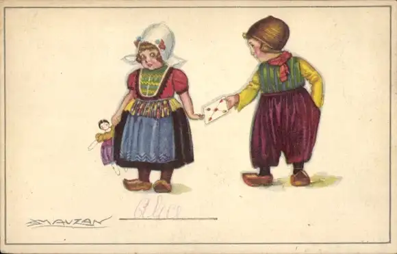 Künstler Ak Mauzan, Kinder in Tracht, Brief
