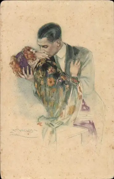 Künstler Ak Mauzan, Küssendes Liebespaar