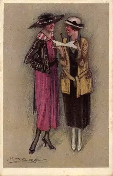 Künstler Ak Mauzan, Zwei Frauen mit einem Brief