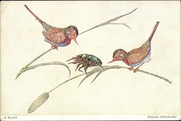 Künstler Ak Maydell, E., Hallo Stranger, Vögel und ein Käfer