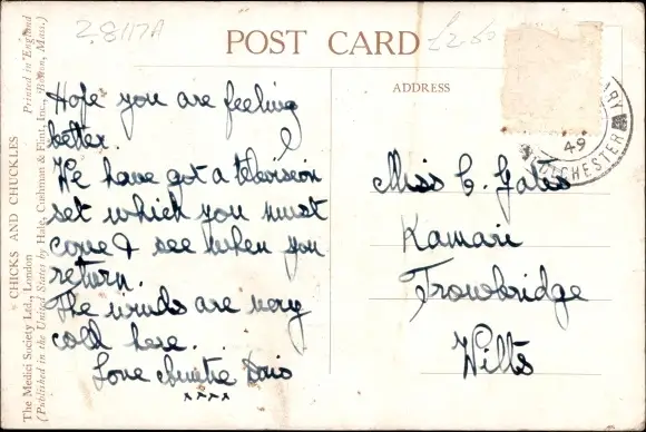 Zustand, siehe Scan, gelaufen, 1949 - ca 13 cm X 9 cm