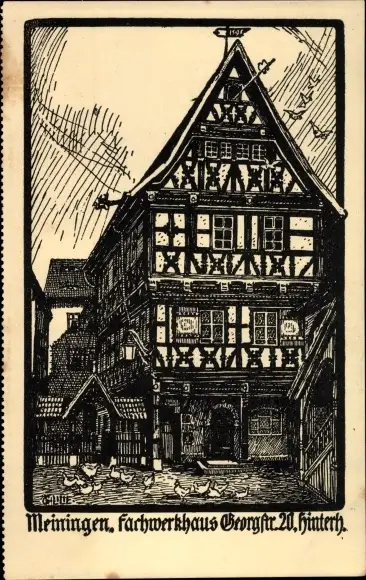 Künstler Ak Meiningen in Thüringen, Fachwerkhaus Georgstraße 20, Hinterhaus
