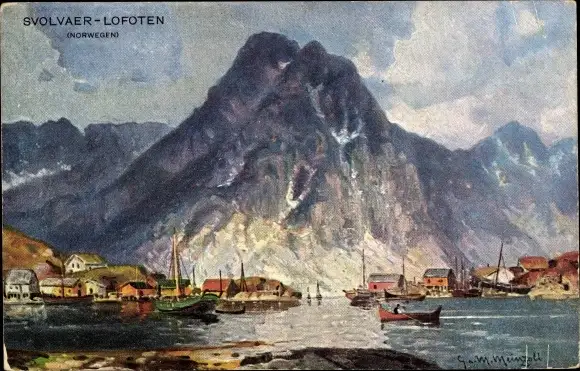 Künstler Ak Meinzolt, Svolvaer Lofoten, Schiffe im Hafen