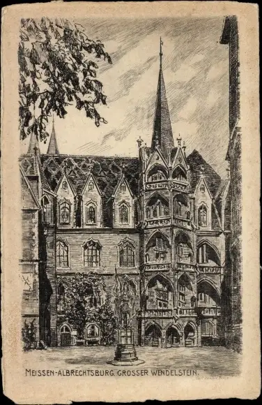 Künstler Ak Meißen an der Elbe, Albrechtsburg, Großer Wendelstein