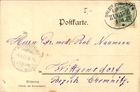 Zustand, siehe Scan, gelaufen, 1905 - Bahnpoststempel Dresden - Meissen, Zug 1559 - ca 14 cm X 9 cm