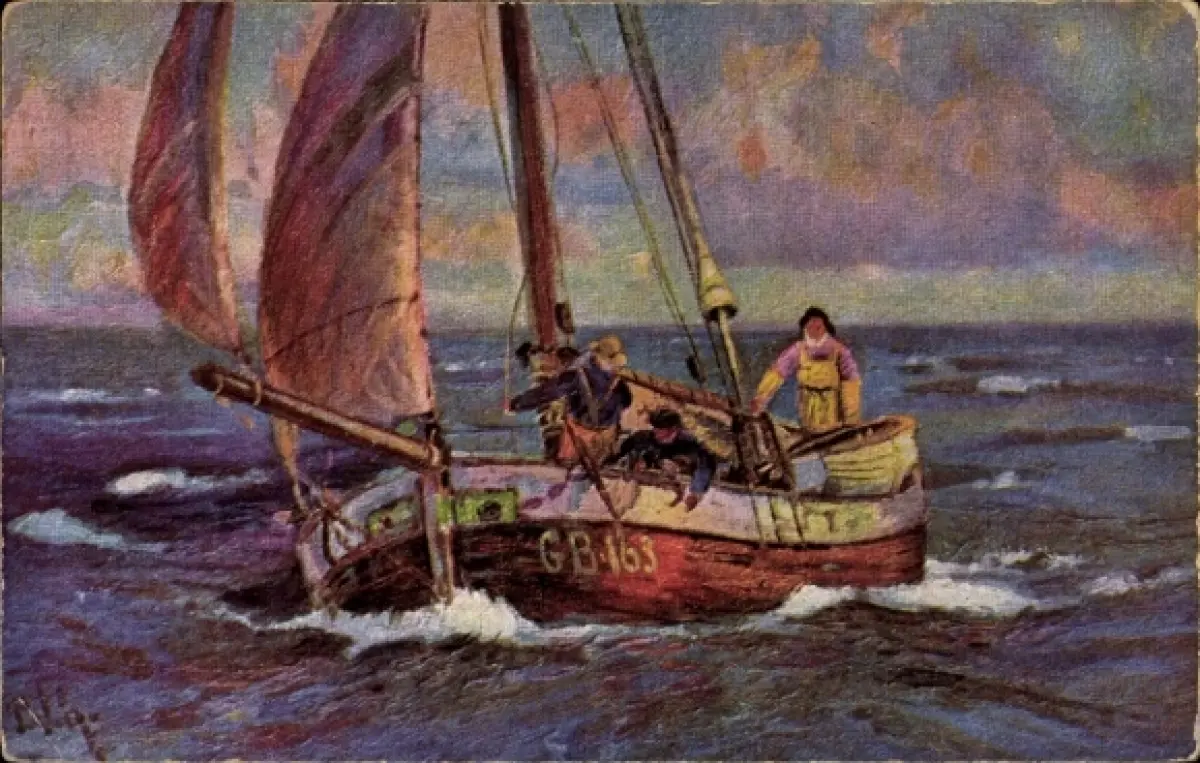 Künstler Ak Menschen beim Segeln, Segelschiff GB 163
