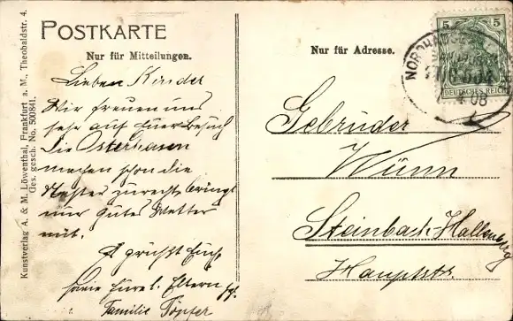 Zustand, siehe Scan, gelaufen, 1908- Bahnpoststempel Nordhausen Erfurt, Zug 504 - ca 14 cm X 9 cm