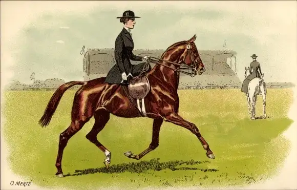Künstler Ak Merte, O., Zwei Frauen zu Pferden