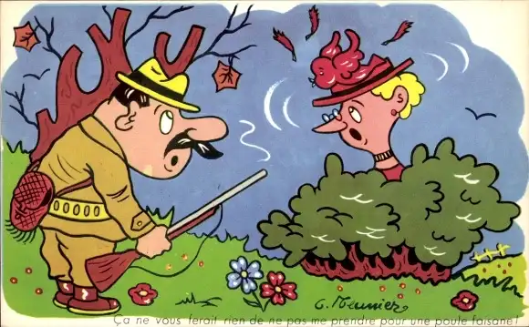 Künstler Ak Meunier, Jäger hat Vogelhut einer Frau getroffen