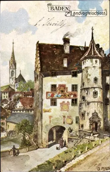 Künstler Ak Meyer, Baden Kanton Aargau Schweiz, Landvoigteischloss