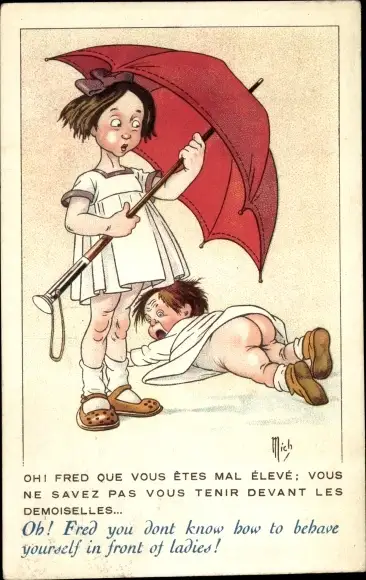 Künstler Ak Mich, Kind mit nacktem Po, Fred, you don't know how to behave yourself in front...