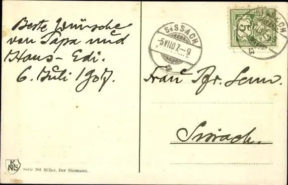 Zustand, siehe Scan, gelaufen, 1907 - ca 5 cm X 3 cm