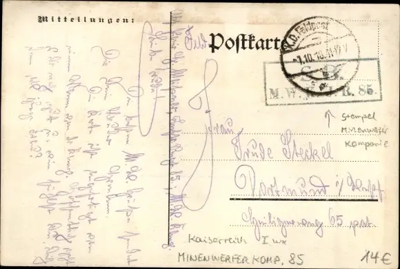 Künstler Ak Minenwerferkompagnie 85, Minenwerfer, Kaiserreich, I WK