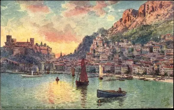 Künstler Ak Monte Carlo Monaco, Vue Interieure du Port