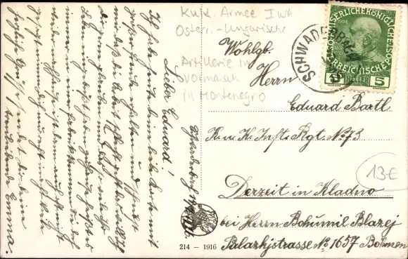 Künstler Ak Montenegro, KuK Artillerie im Marsch, I WK