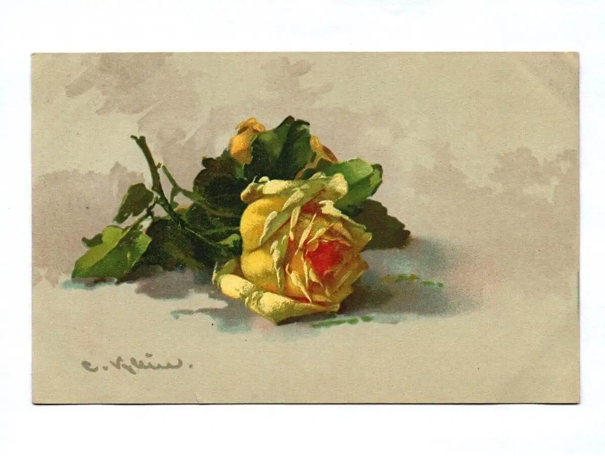 Künstler Ak Motiv gemalte Rose 1917 Klein signiert