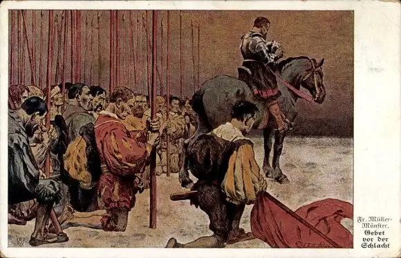 Künstler Ak Müller, F., Gebet vor der Schlacht, Betende Krieger