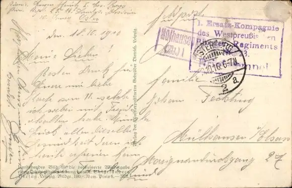 Zustand, siehe Scan, gelaufen, 1916 - ca 14 cm X 9 cm