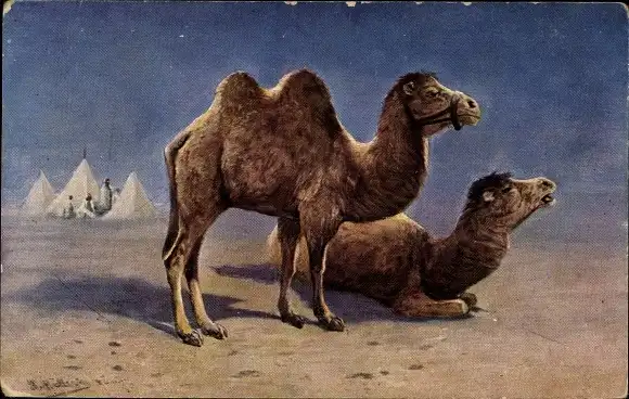 Künstler Ak Müller, M., Kamele in der Wüste, Karawane