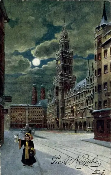 Künstler Ak München Bayern, Neujahrsgruß, Kindl
