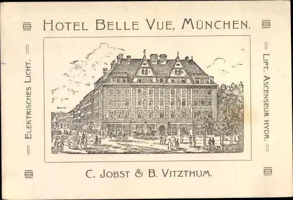 Künstler Ak München, Hotel Belle Vue, Inh. C. Jobst & B. Vitzthum