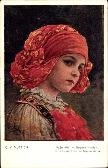 Künstler Ak Muttich, C. V., Portrait von einem Mädchen, Tracht, Rotes Kopftuch