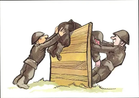 Künstler Ak Muzeniek, Peter, NVA Soldaten überqueren Hindernis