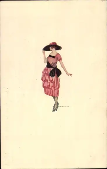 Künstler Ak Nanni, Frau in rosa Kleid mit Hut
