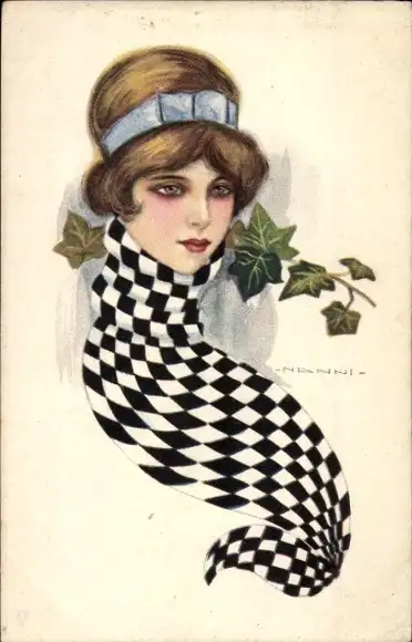 Künstler Ak Nanni, Frau mit schwarz-weißem Schal