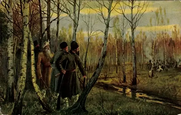 Künstler Ak Napoleon in Russland, Hinterhalt